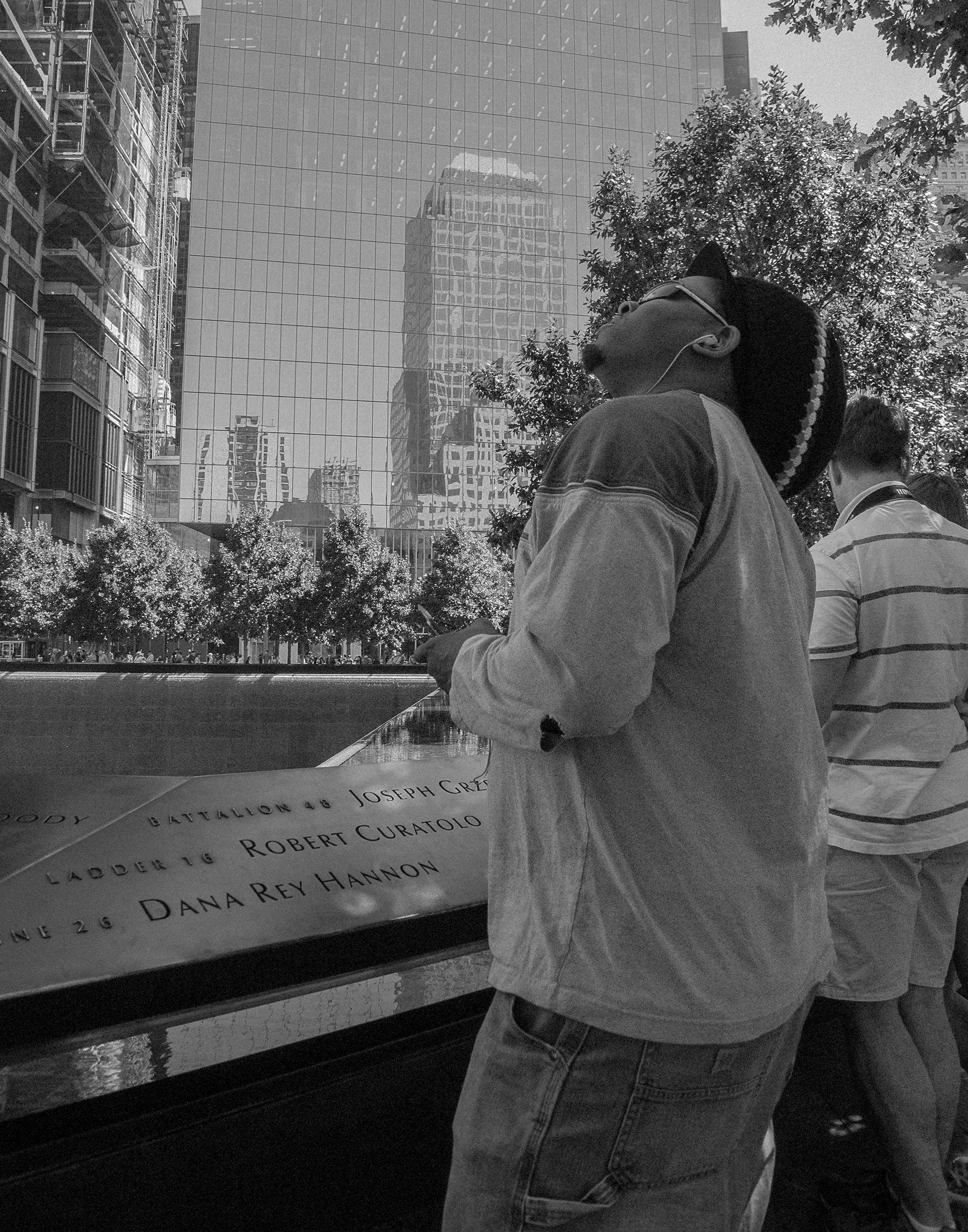 People from all over the world or even from around the corner come to the freedom tower every day. Some come to mourn loved ones, some come to see the new NYC landmark and some come to take in the intense history of this sight. This series emphasizes the different types of people who come to the freedom tower for their own reasons.
